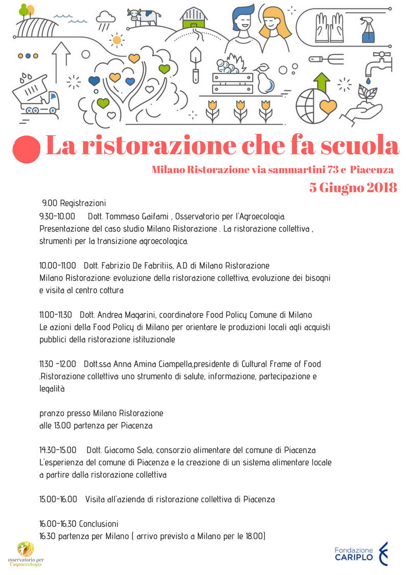 Milano Ristorazione è una società detenuta al 99% dal Comune di Milano, e rappresenta un caso unico a livello nazionale ed internazionale. Non esiste altra città in Europa, infatti, nella quale il servizio di ristorazione sia affidato ad un’unica azienda. Con i suoi 85.000 pasti al giorno, preparati in 112 cucine, si pone l’obbiettivo di fornire un cibo “sano, buono ed educativo”, valorizzando la biodiversità e la promozione di progetti di educazione al consumo e di recupero delle eccedenze alimentali. Dal Bilancio Sociale del 2016 si evince che attualmente il costo di ogni pasto è di circa 4.80€ in media, e di questo 1€ è il costo food (meno del 21%). Il restante 3.80€ è speso in gran parte perla preparazione, il trasporto e la somministrazione del pasto. Verranno descritti esempi di ristorazione pubblica dall’Italia e dall’estero, come esempi di buone pratiche su cui riflettere.